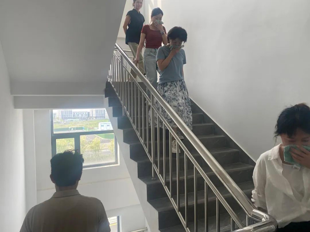 此次演練模擬辦公區(qū)域突發(fā)火災(zāi)場景,重點圍繞人員疏散、初期滅火和設(shè)備實操等環(huán)節(jié)展開。15時30分,綜合樓消防警報驟響,消防卷簾自動落下,應(yīng)急照明亮起,整個綜合樓瞬間進入模擬火場狀態(tài)。在消防總指揮和消防片長、樓長的指組織下,樓內(nèi)全體人員根據(jù)應(yīng)急廣播指引,沿預(yù)定路線迅速有序撤離至室外集結(jié)點,與此同時,安保人員第一時間撥打119報警電話,微型消防站迅速啟動消防設(shè)施,開展火場控制和初期滅火等工作。最終,所有人員安全撤離。