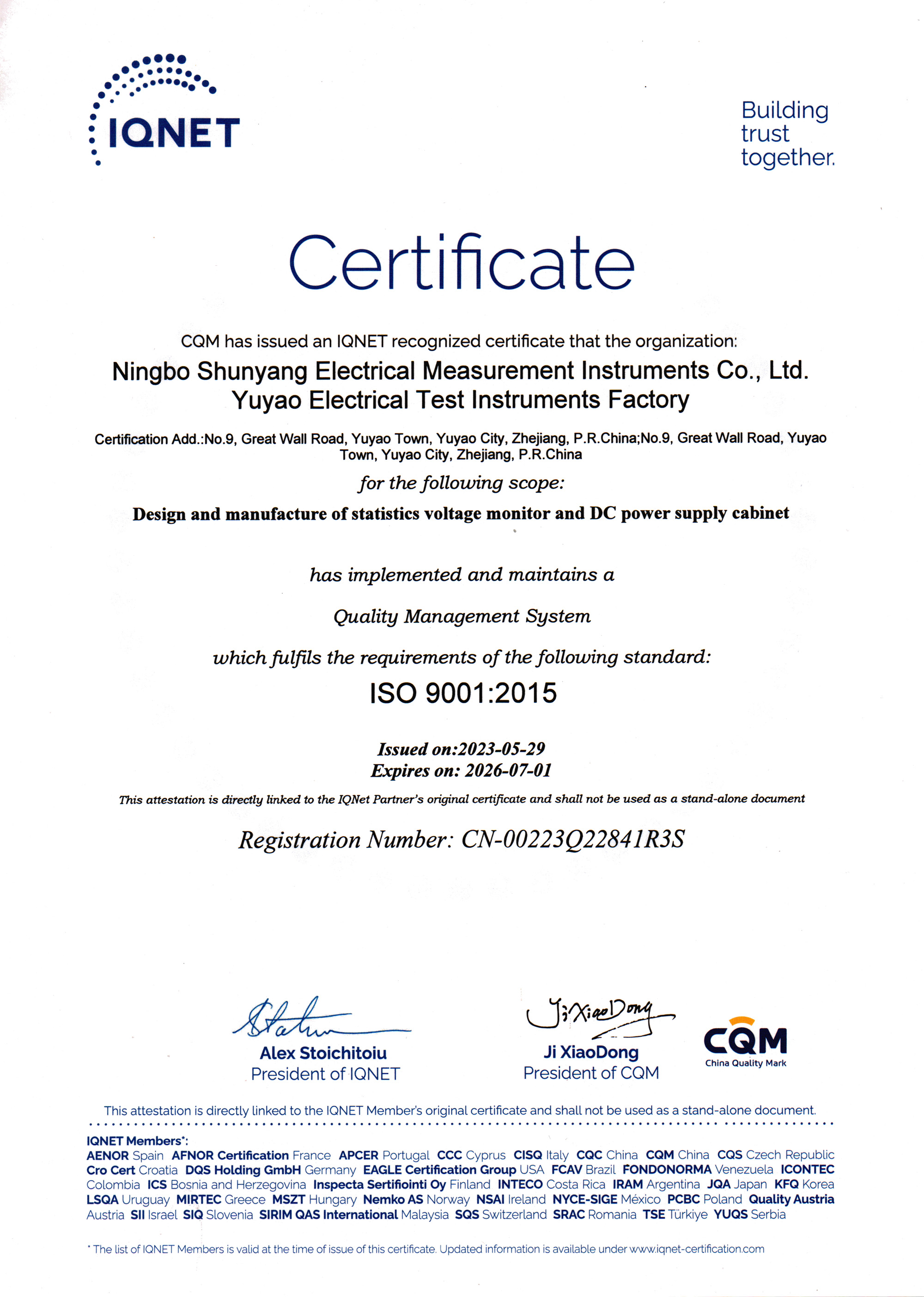 國(guó)際認(rèn)證聯(lián)盟(IQNet)證書(shū)